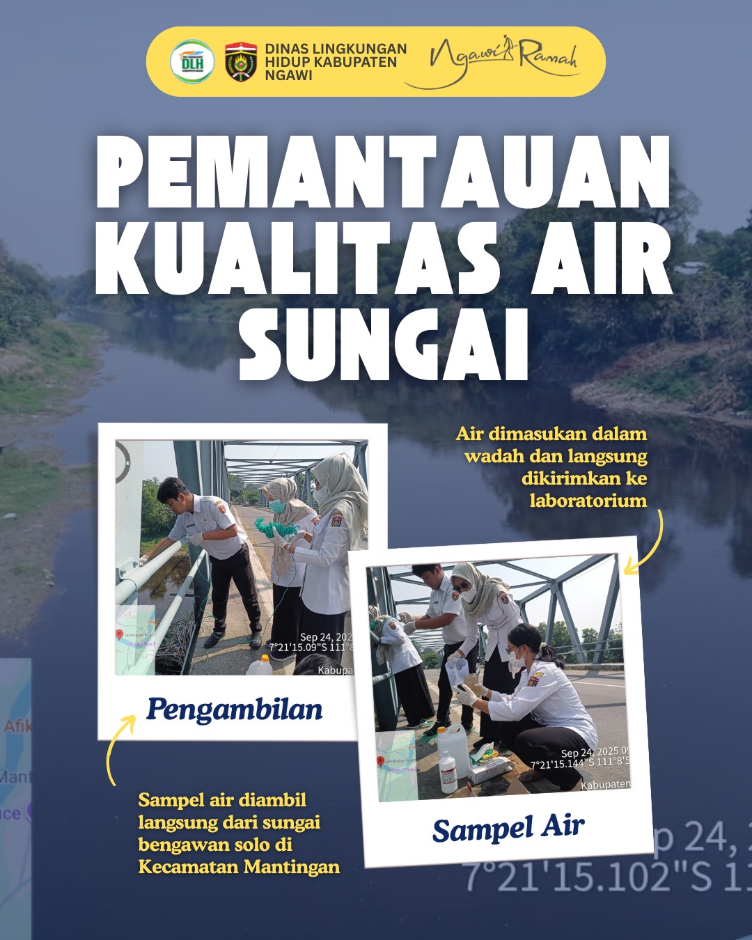 💧 Pemantauan Kualitas Air Sungai Bengawan SoloDLH Kabupaten Ngawi melaksanakan kegiatan pemantauan kualitas air sungai…