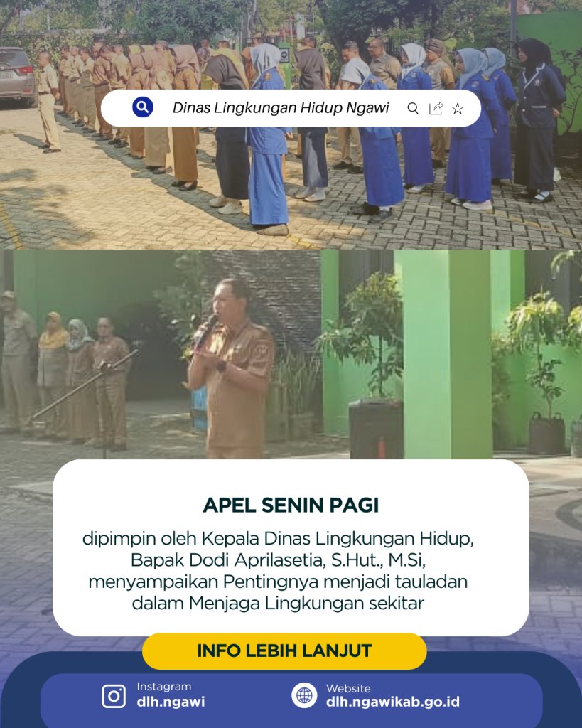 Apel pagi kali ini dipimpin langsung oleh Kepala Dinas Lingkungan Hidup Kabupaten Ngawi, Bapak Dodi Aprilasetia, S.Hut., M.Si.