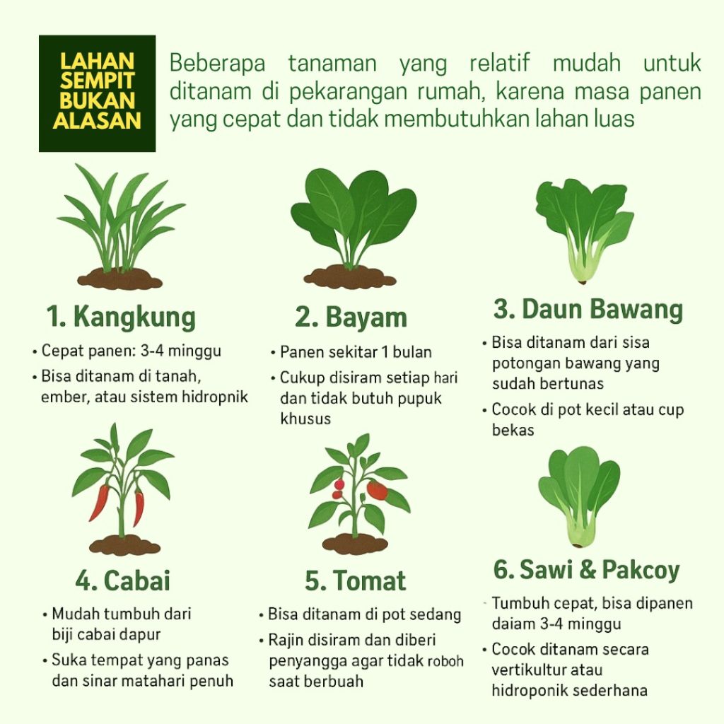 Dengan menanam sayuran, buah, dan tanaman obat keluarga, kita tidak hanya mencukupi kebutuhan pangan sendiri, tetapi juga ikut menjaga kelestarian lingkungan dan memperkuat kemandirian masyarakat. πΎπ